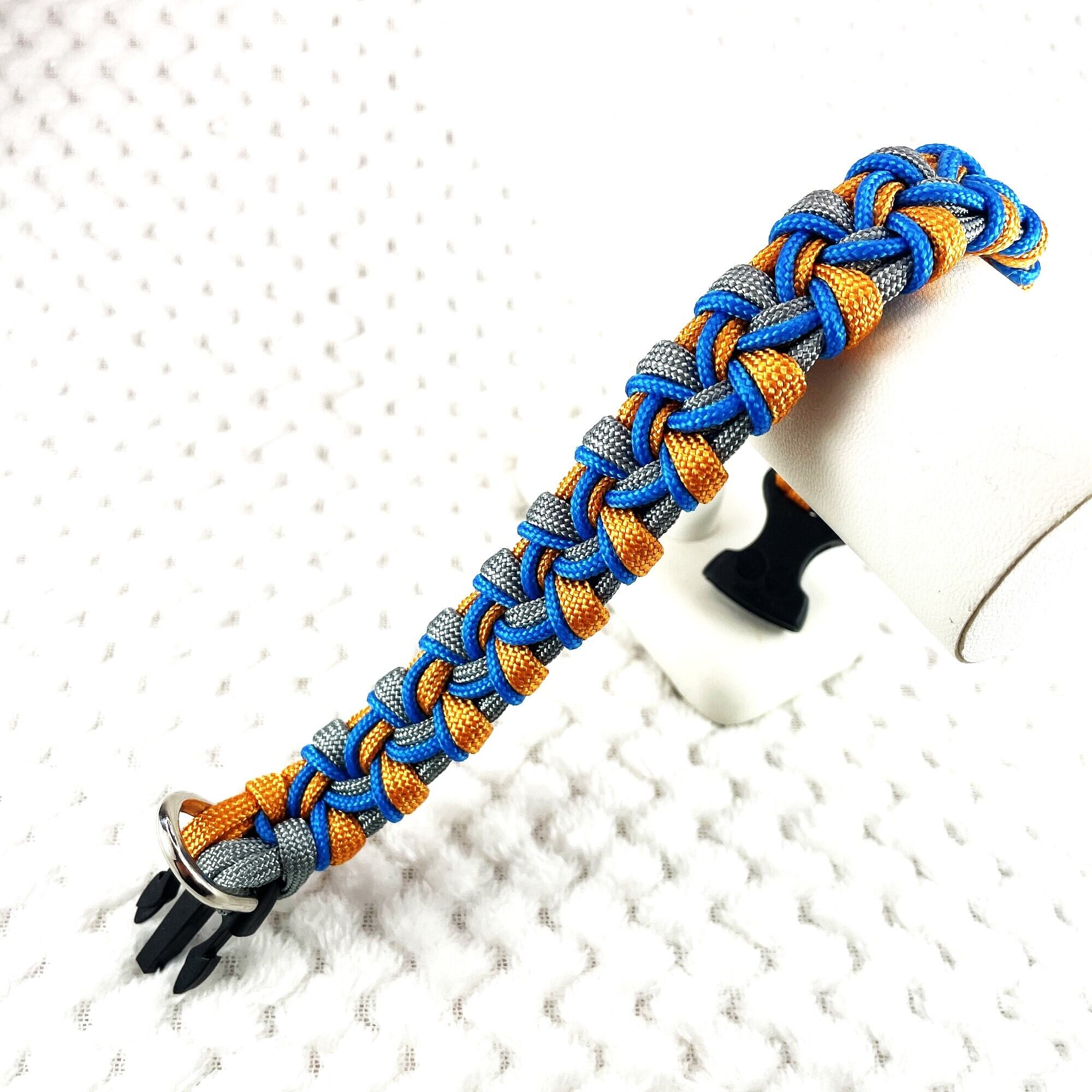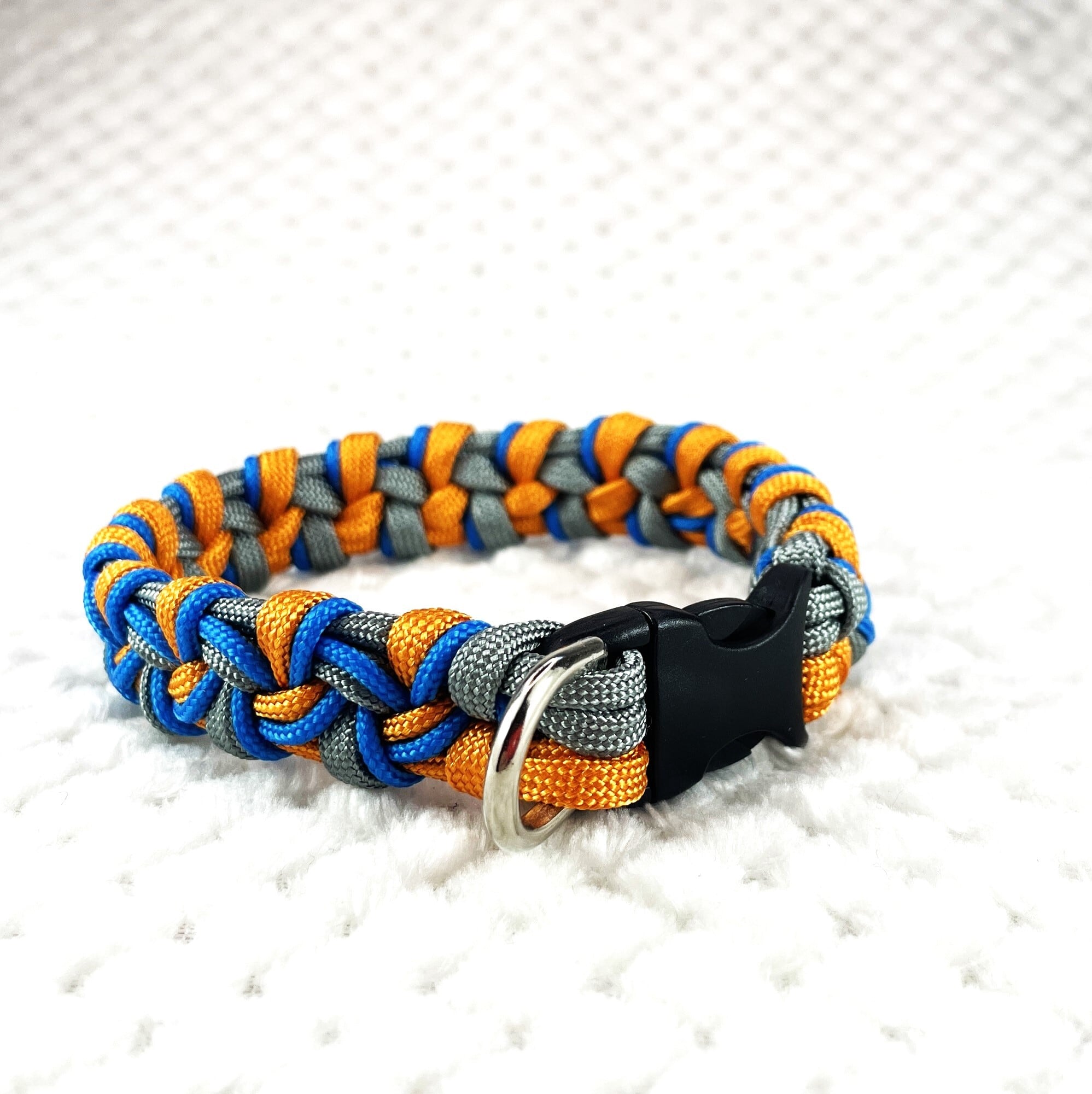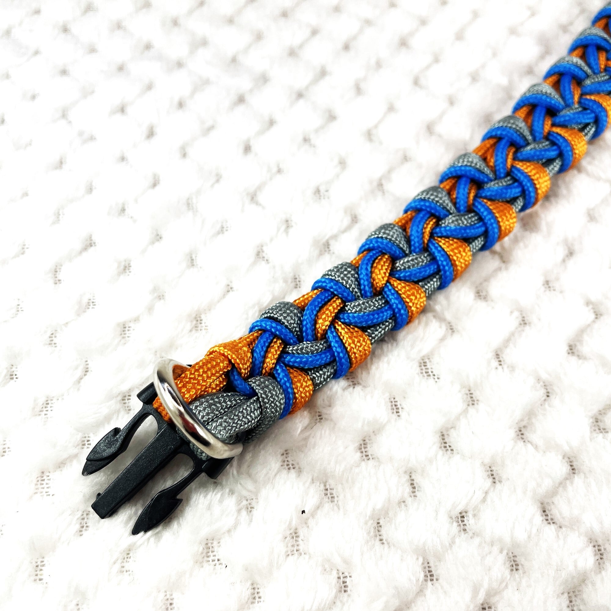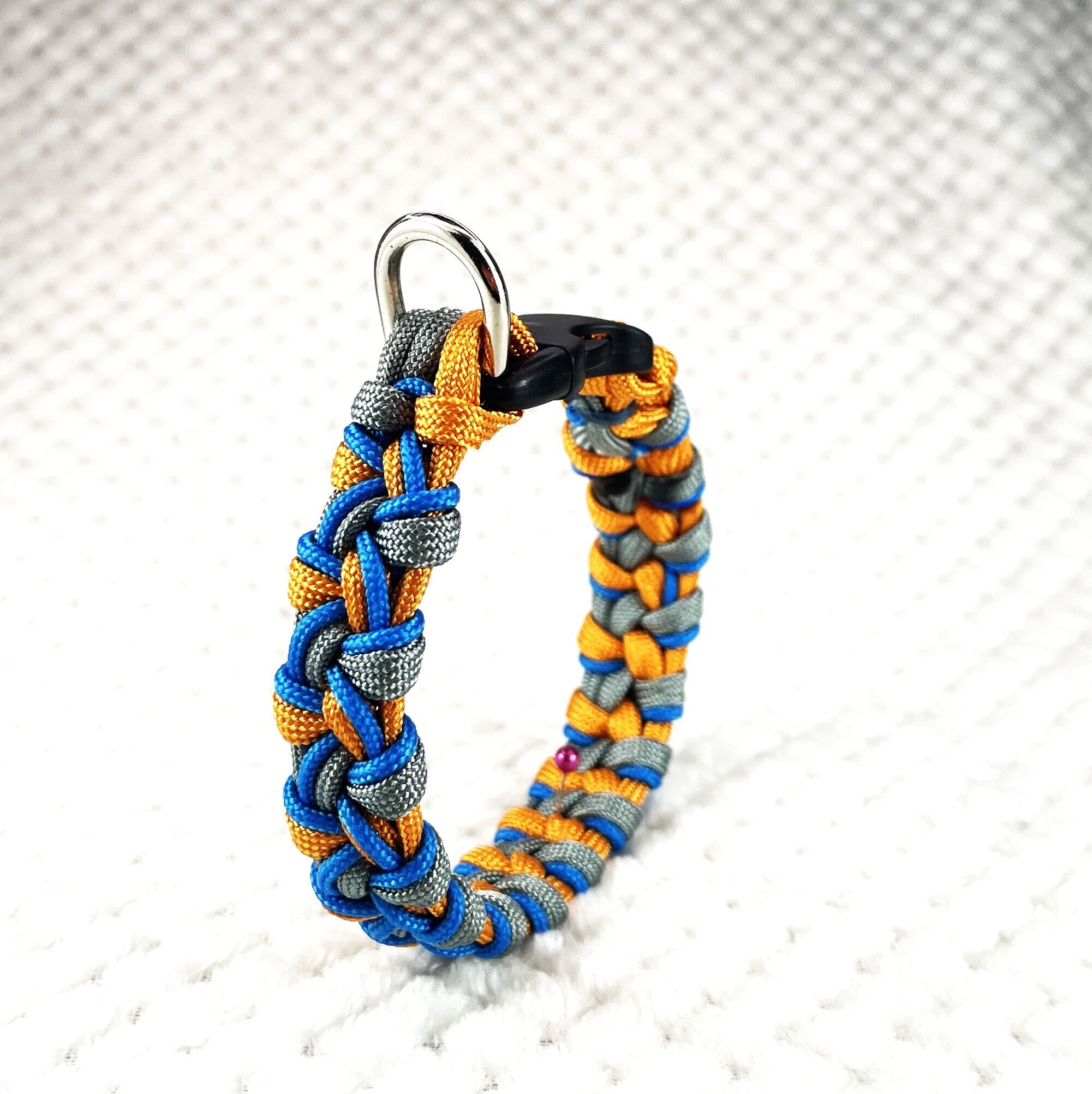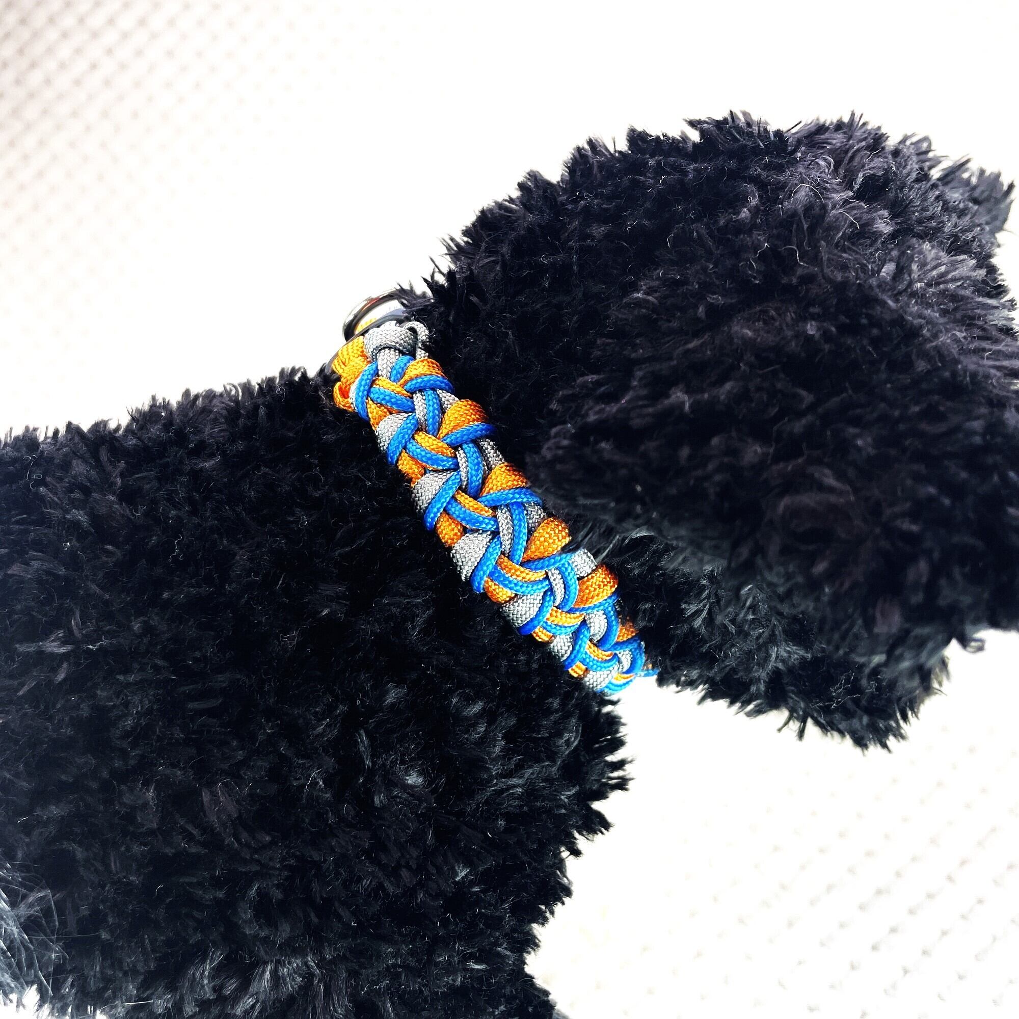 この首輪は丈夫なパラコードで編まれ