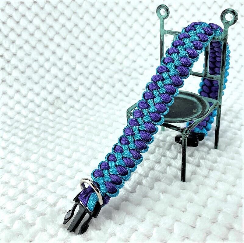[材料のみ]#34パラコード編み犬首輪ターコイズブルーとディープ・パープルの犬首輪