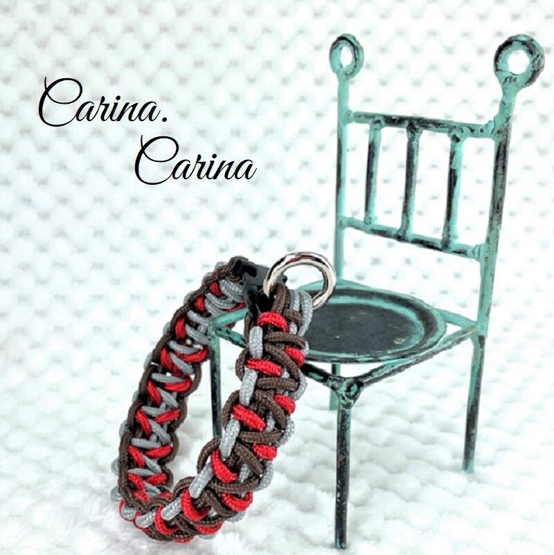 「キット]パラコード#50No71 マクラメ編み赤と茶グレーの犬猫首輪