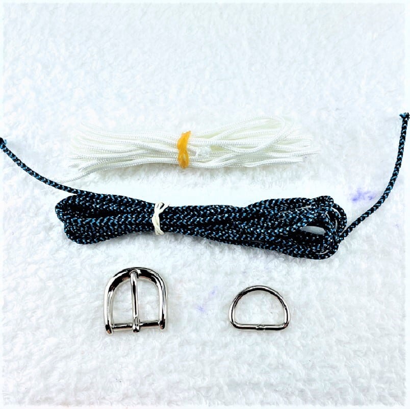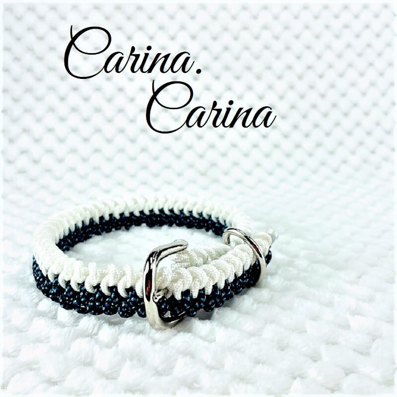 [キット]パラコード#52No74マクラメ編み 白とまだら紺色の犬首輪