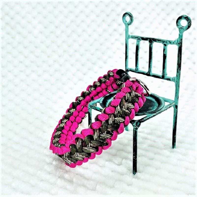 [キット]パラコード#55No80マクラメ編み ローズ、まだら色の小型、中型犬首輪