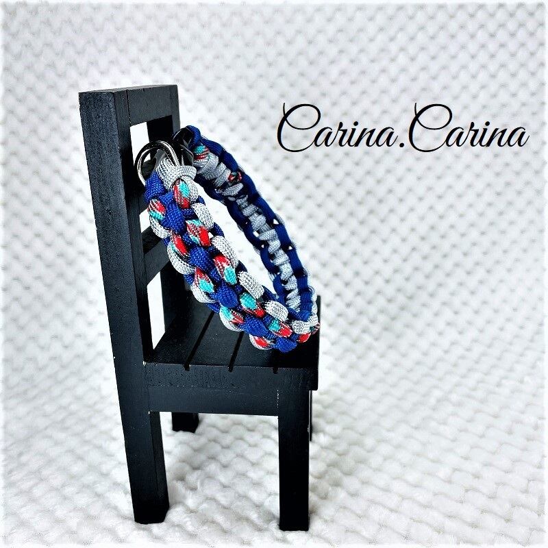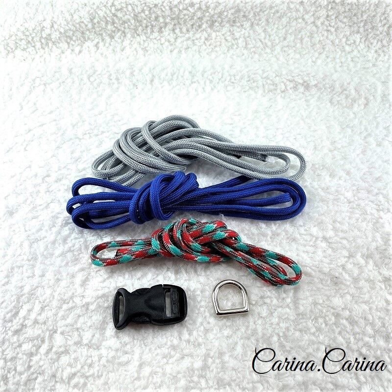 [キット]パラコード#60No85マクラメ編みグレー青まだら色3色大、中型犬用首輪