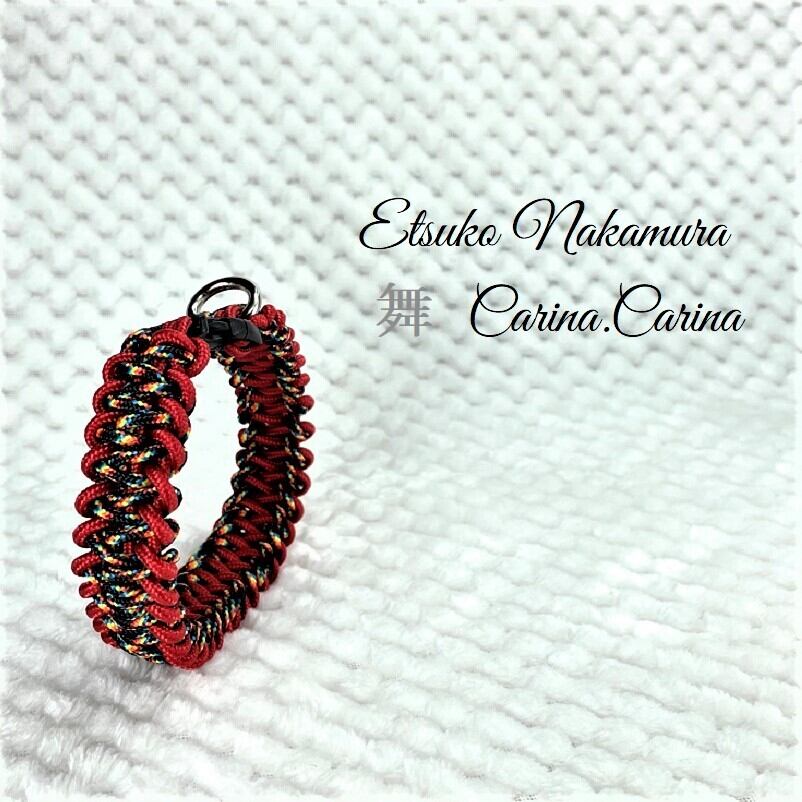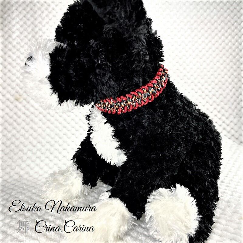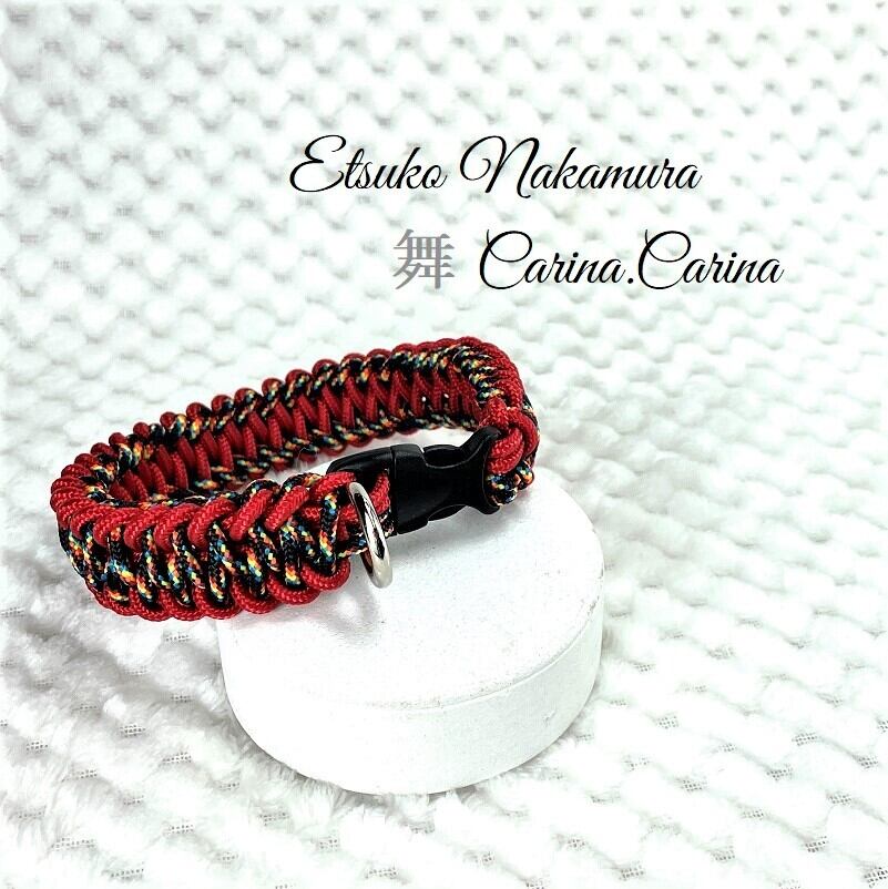 [キット]パラコード#48No69マクラメ編み赤まだらと赤の中、小型犬用首輪