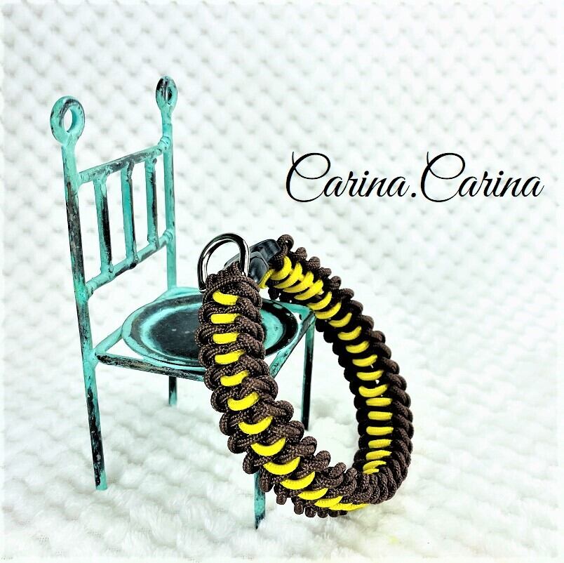 [キット]パラコード#62No87マクラメ編みイエローと茶色大、中型犬用首輪