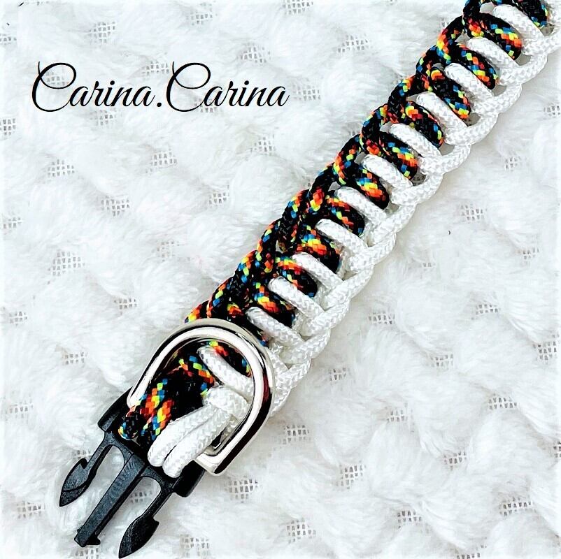 [キット]パラコード#78No103マクラメ編み白とカラフルまだらの犬猫首輪