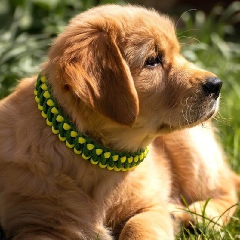 [公式]パラコード#166マクラメ編み グリーンとライトグリーンの小型、中型犬用首輪No198