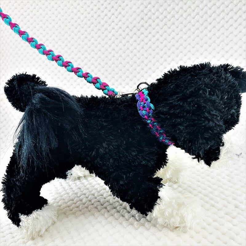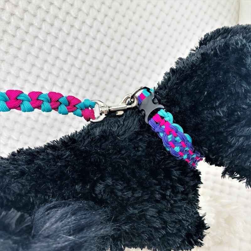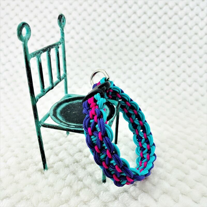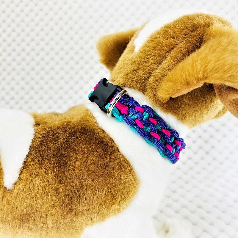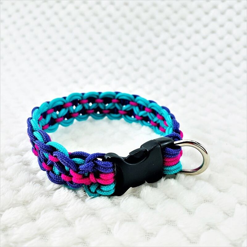 パラコードの径4mm、2mmロープで首輪3色使い、