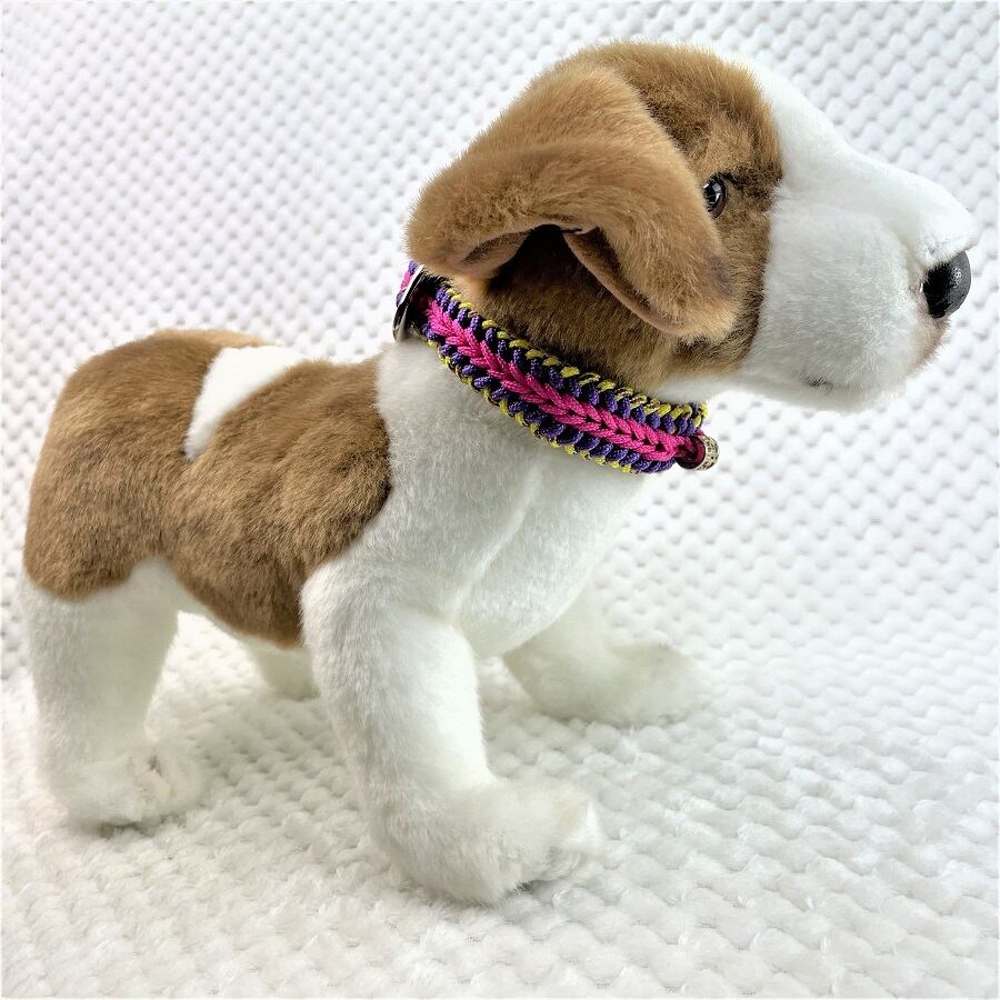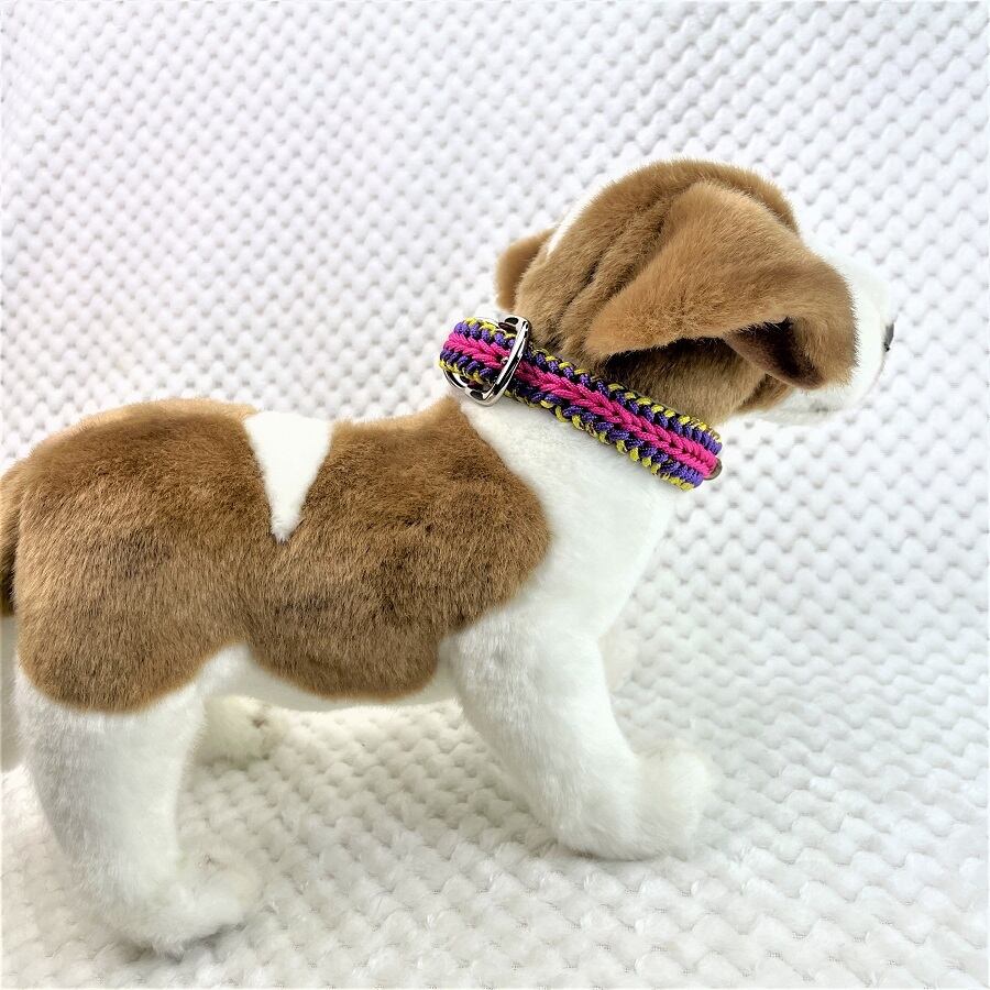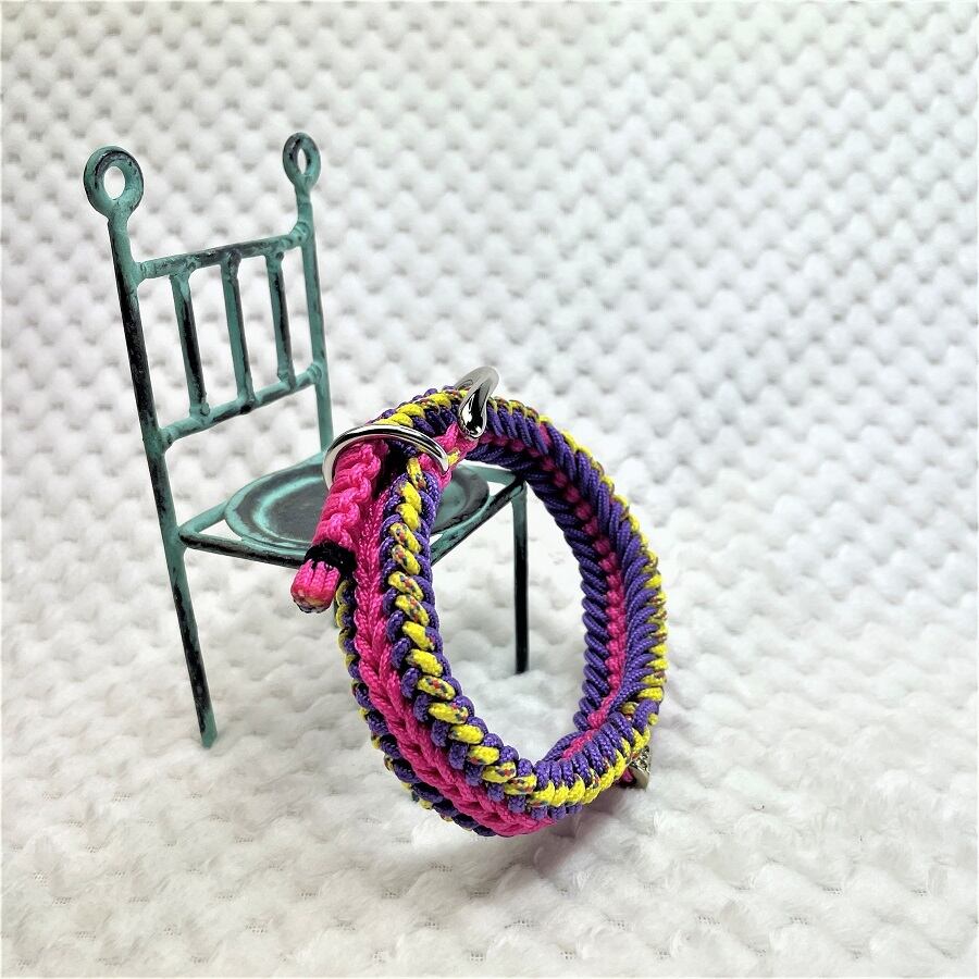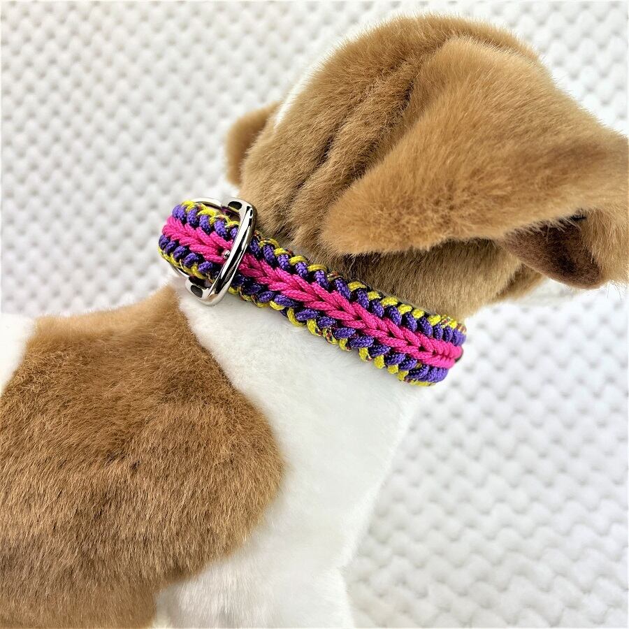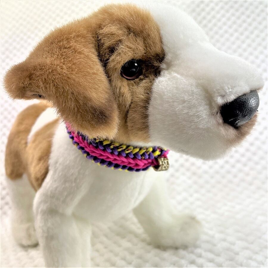 彩る、マクラメ編みの小型犬用首輪。