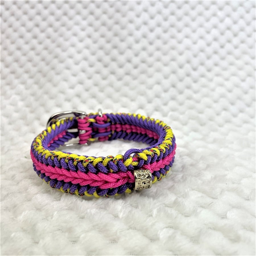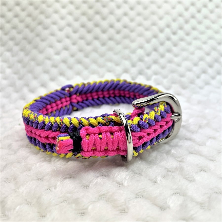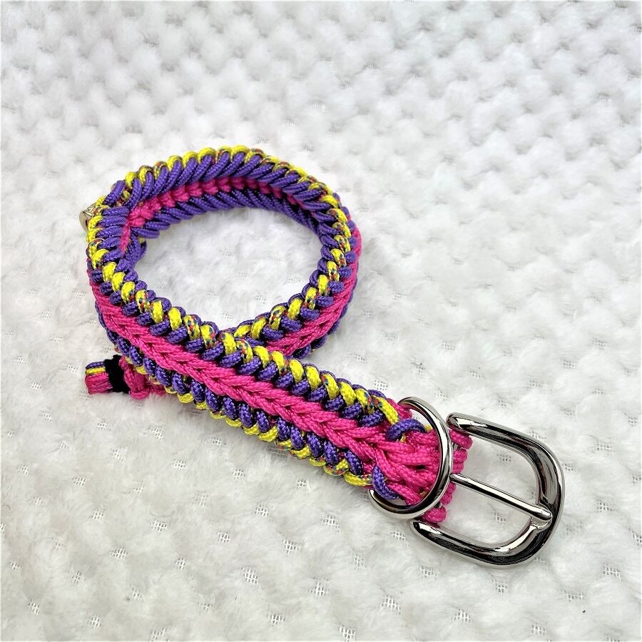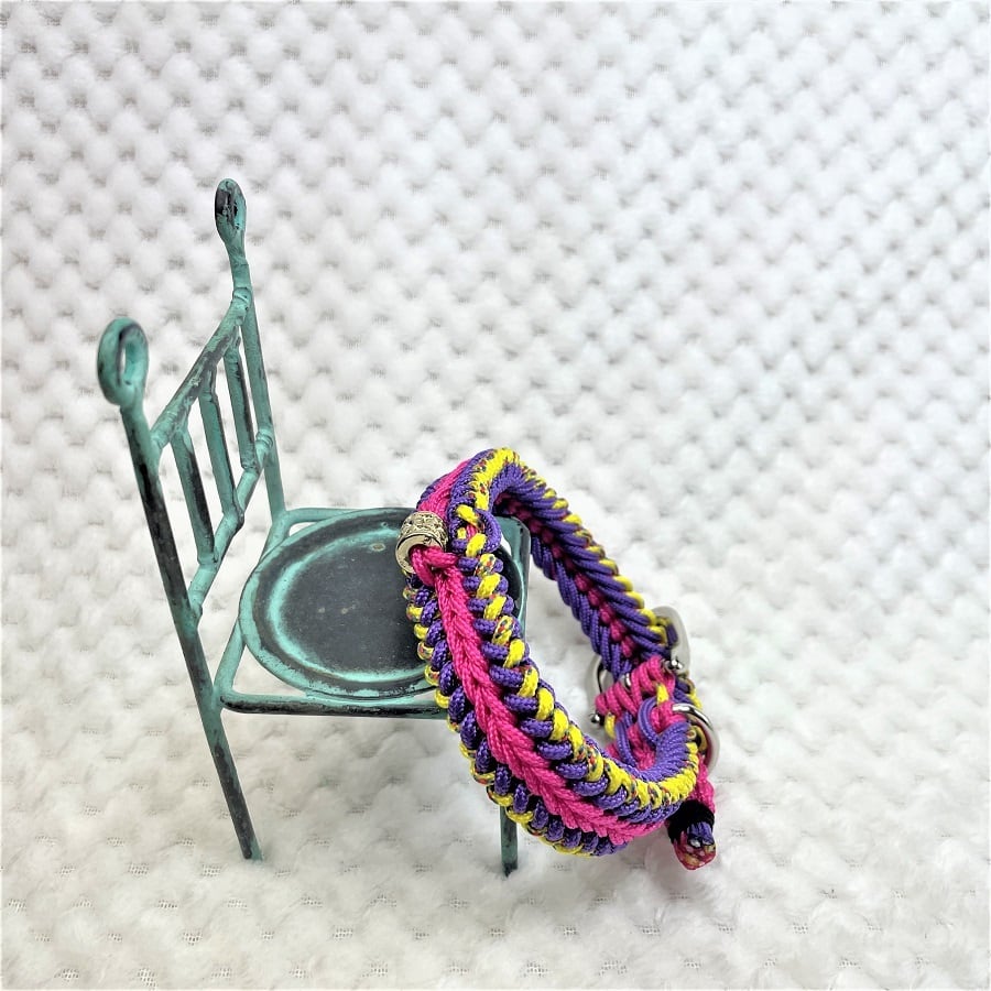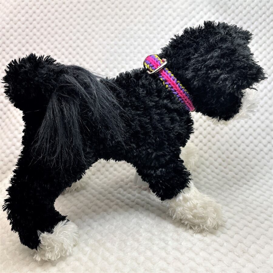彩る、マクラメ編みの小型犬用首輪。